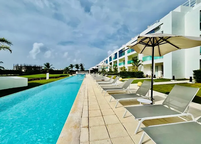Paradise Pool Front And Beach Condo At Punta Cana spacieux est situé à moins de 19 minutes de marche de Golf de Punta Blanca et à 4 km d'Arena Blanca Beach. L'accès à un club de golf est disponible pour les clients actifs dans le domicile de 99 m².